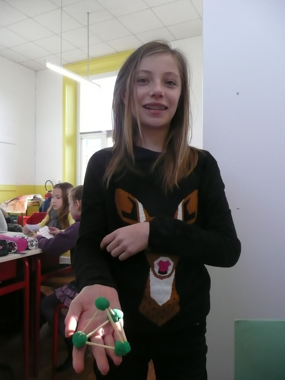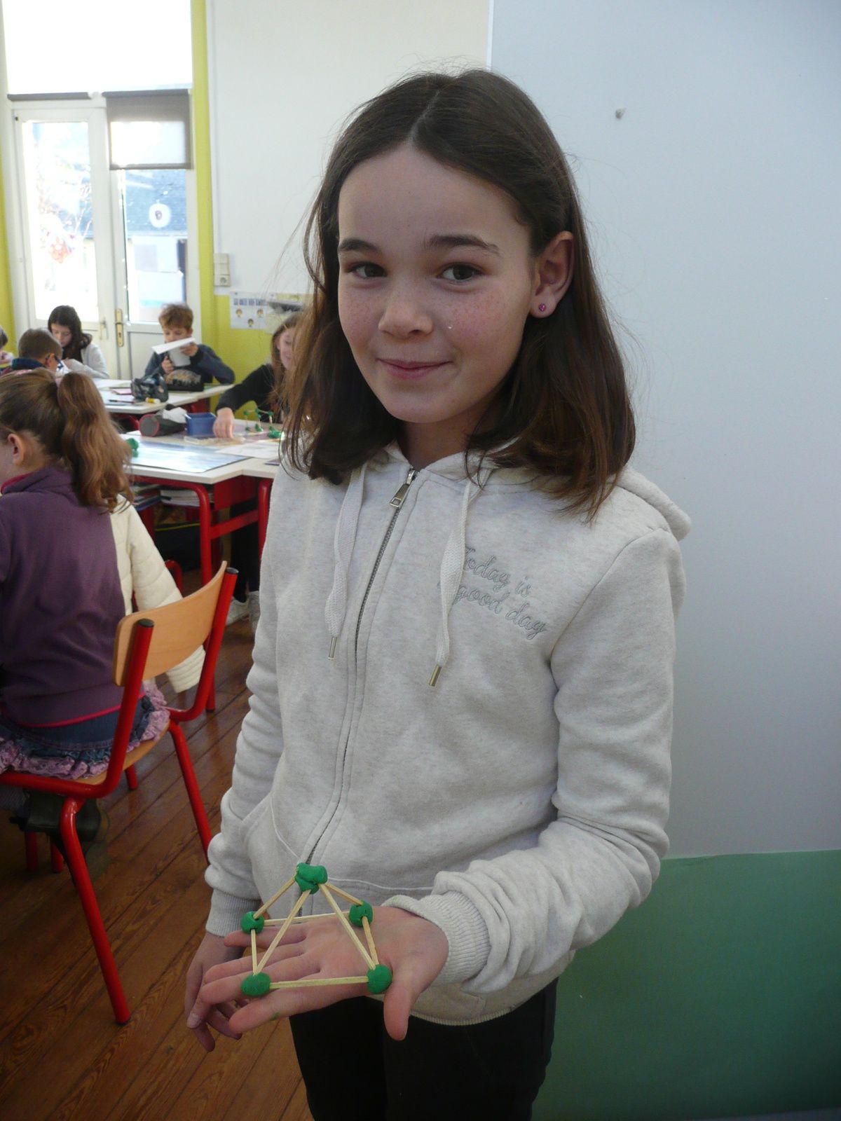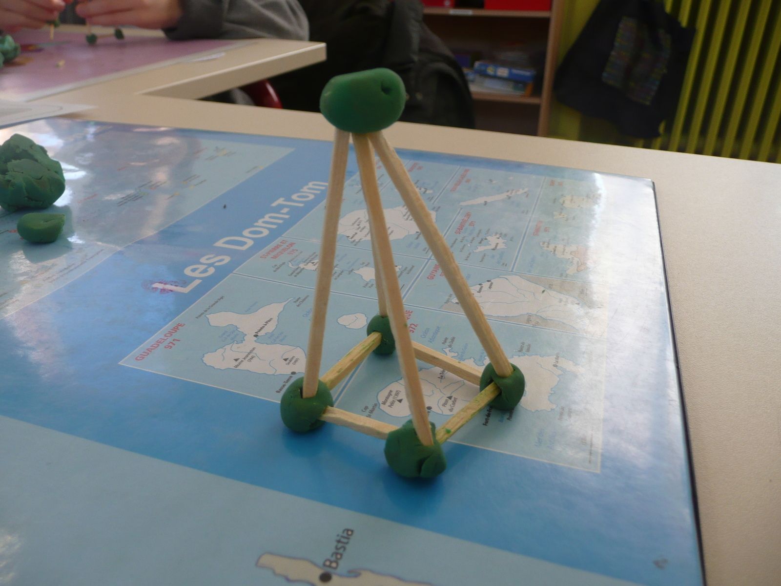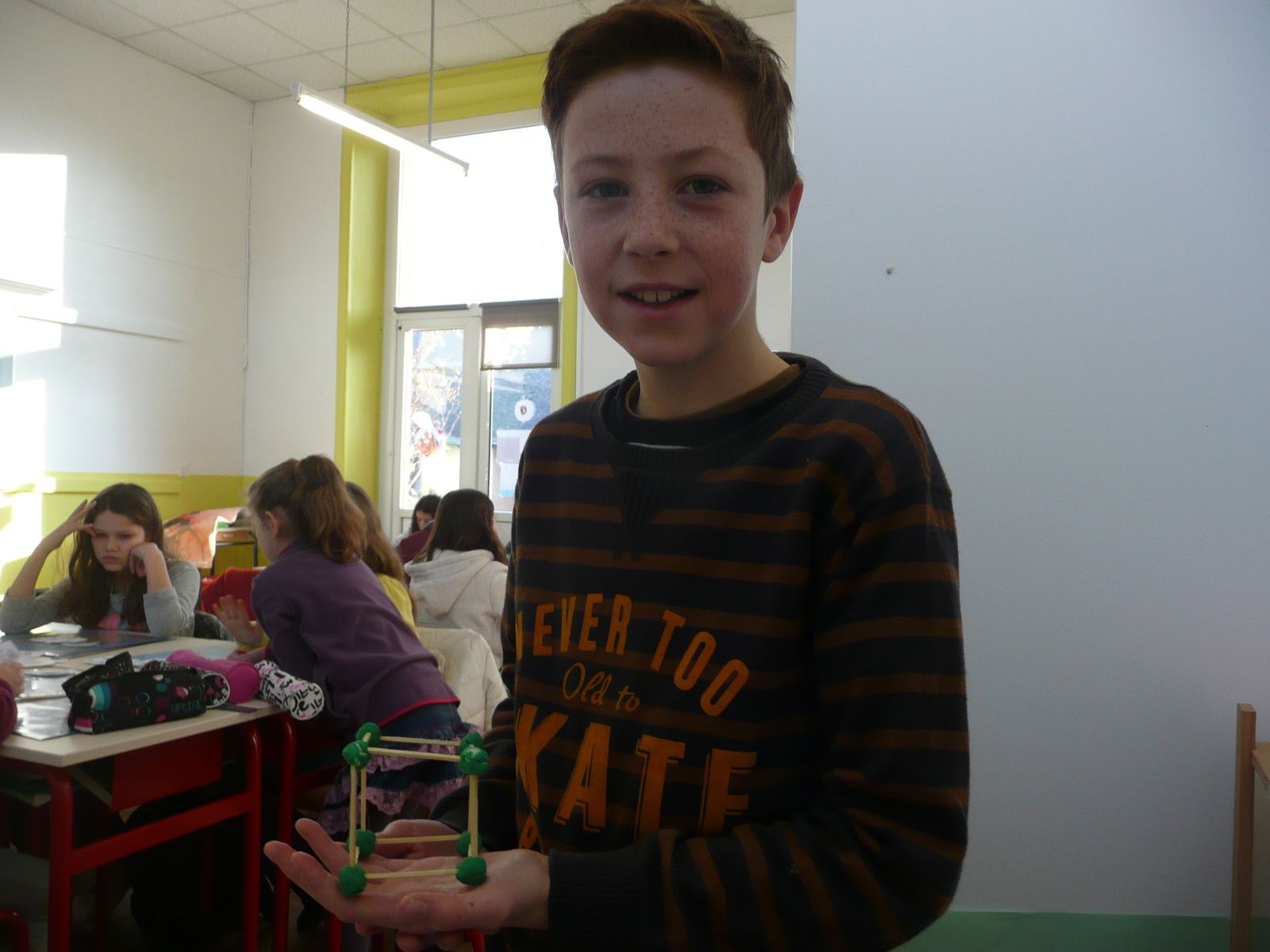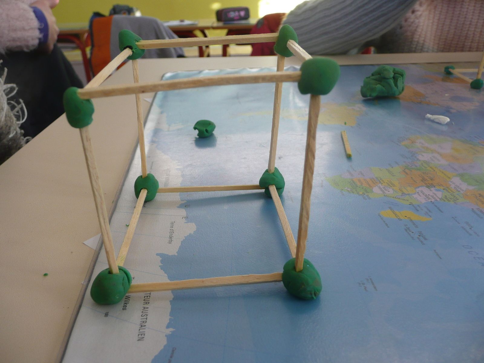 L'objectif était de prendre conscience de la forme des solides et de sa composition : arêtes, faces et sommets. Une fois fabriqué, il était facile pour les élèves de compter tous ces éléments.