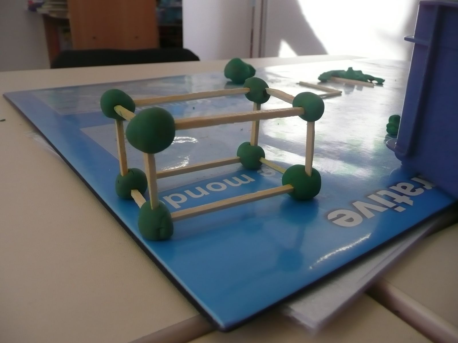 La semaine dernière, nous avons travaillé sur les formes géométriques en volume : les solides.Un atelier consistait à fabriquer des solides à l'aide de pâte à modeler et d'allumettes.