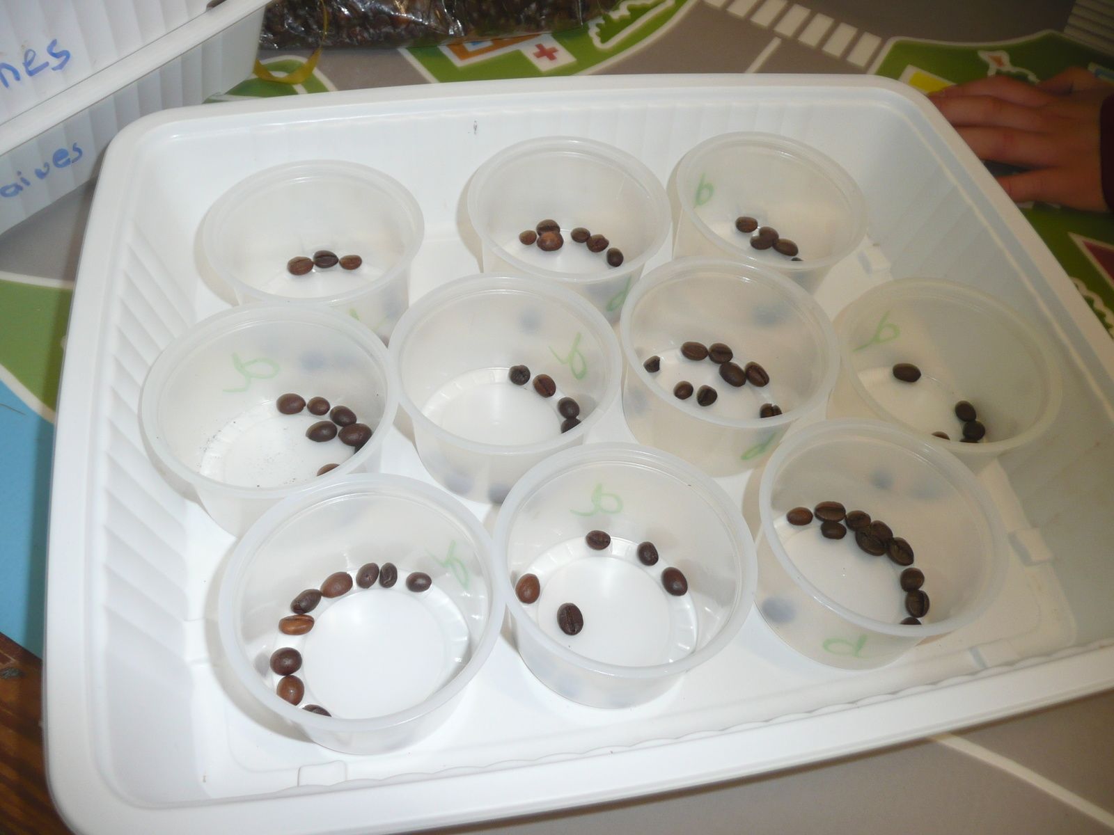 Pour atteindre cet objectif, les élèves devaient compter le nombre de grains de café en élaborant des stratégies de regroupement par dizaines, centaines...