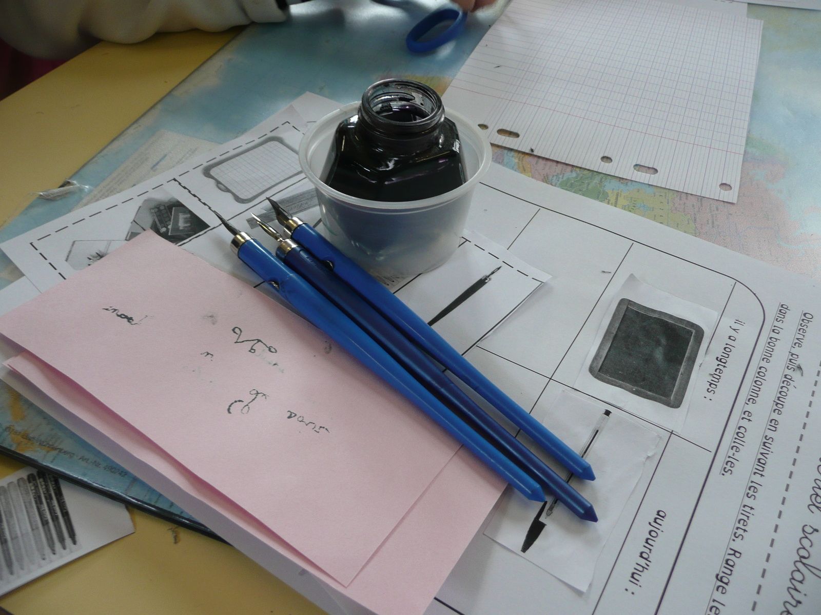 Le mardi 4 avril, les élèves de CP CE1 ont pu essayer d'écrire à la plume comme les écoliers des années 50.