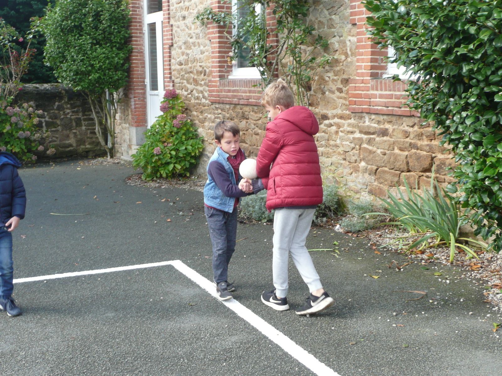 Par groupe de deux (un élève de la classe Maud et un éève de la classe de Mélina,on croisait les mains et on devait réaliser un parcours en mettant le ballon sur les mains. Sur le circuit, il fallait faire des slaloms entre les poteaux, ne pas toucher la ligne blanche et enfin déposer le ballon dans le panier.Article écrit par Sasha, Lilian, Swann et Zoé.